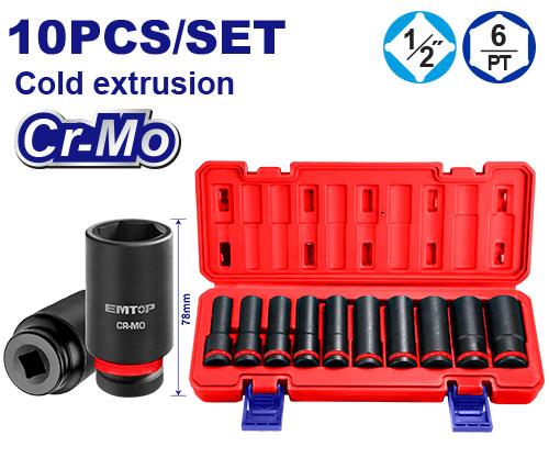طقم بكسات طويل ١/٢هنش ١٠قطع من٢٤-١٠ملي امتوب